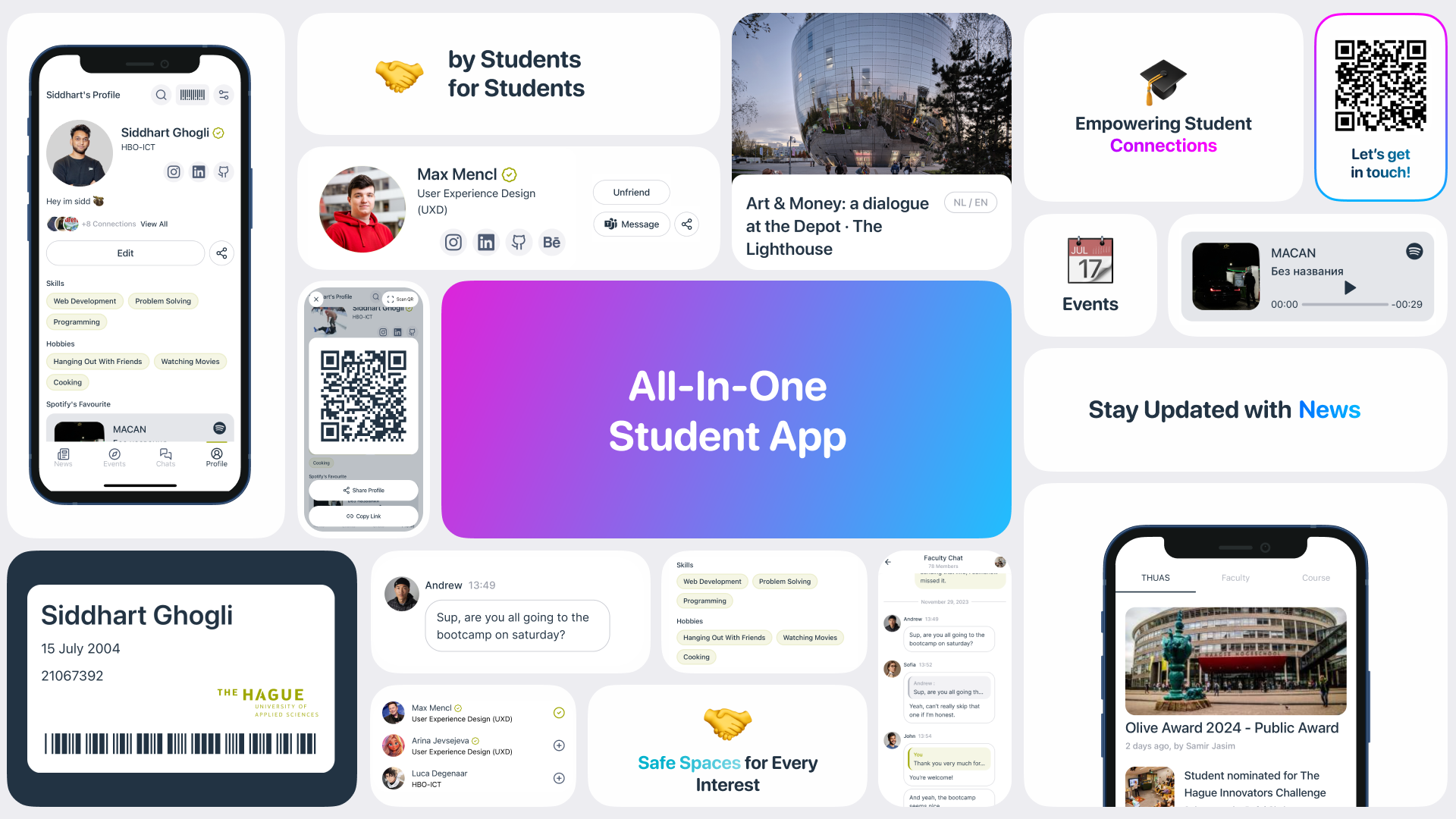 Our journey began at The Hague University of Applied Sciences, where we witnessed firsthand the challenges of campus engagement and community building. What started as a simple idea in the bustling halls of our university has grown into a mission to transform how students connect and engage with their campus communities across the Netherlands and beyond. The vibrant atmosphere of university life, with its diverse student body and countless opportunities for connection, inspired us to create a platform that makes these interactions more accessible and meaningful for everyone.